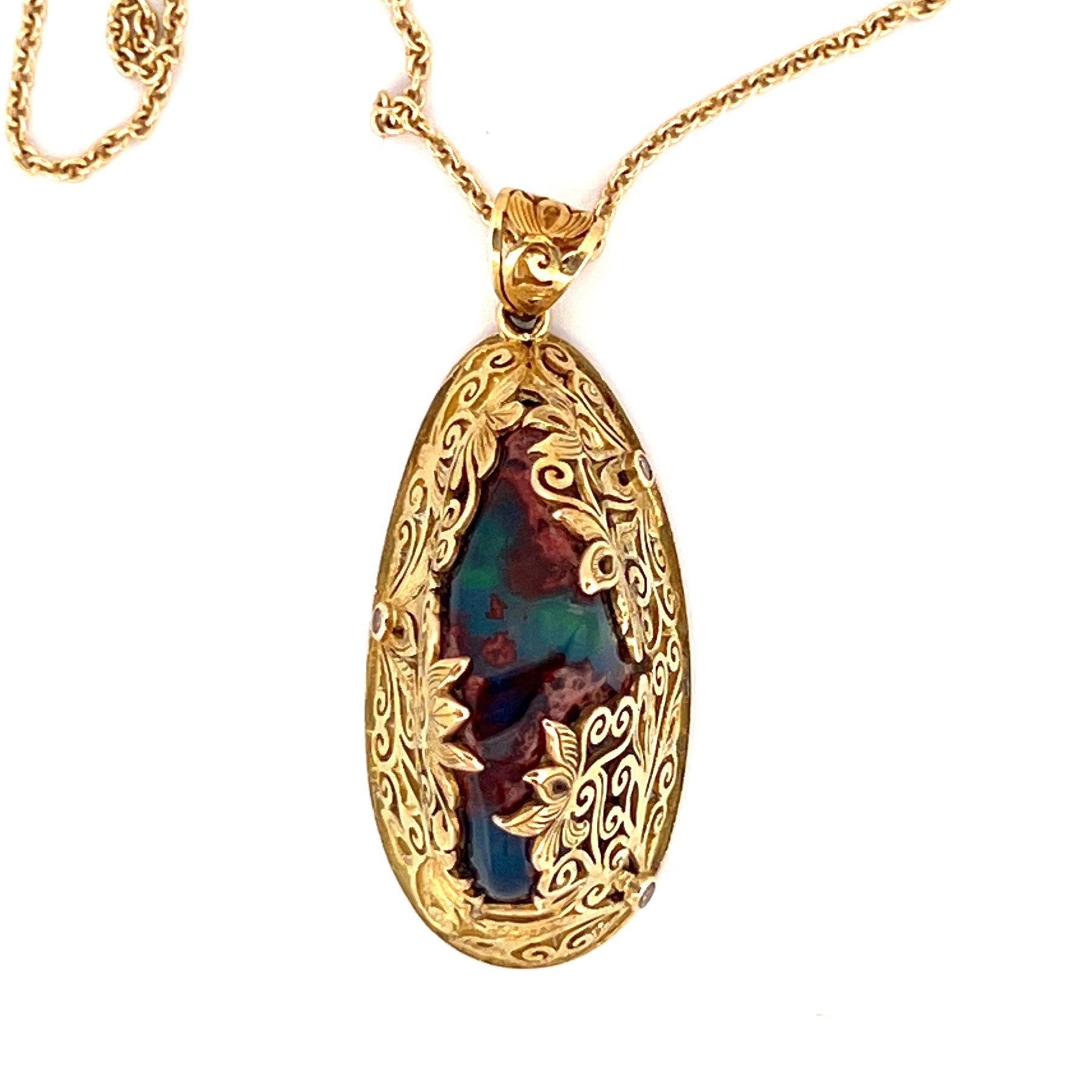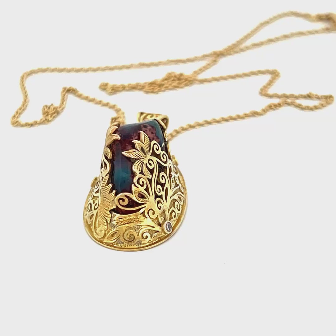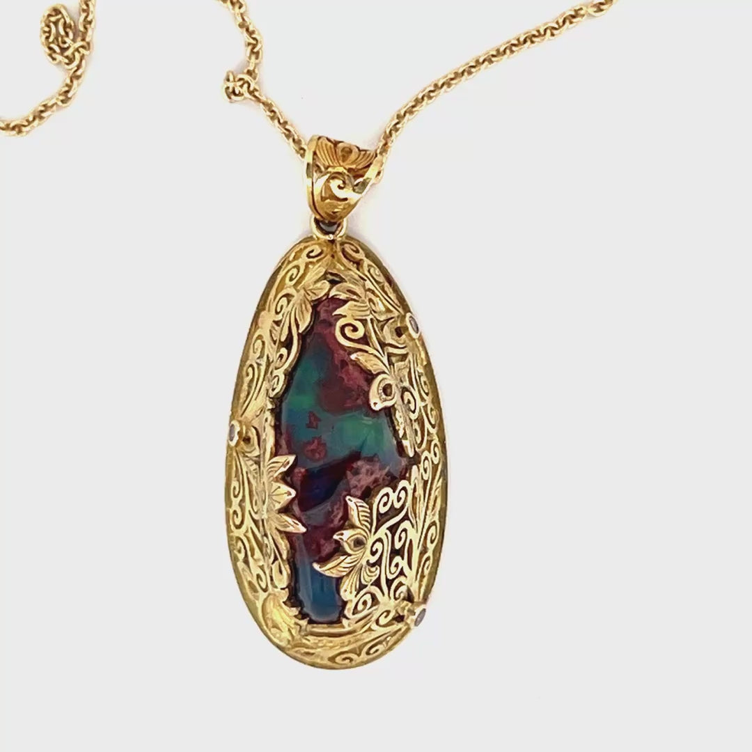 18K Gold Anhänger mit Schwarzem Opal & Diamanten